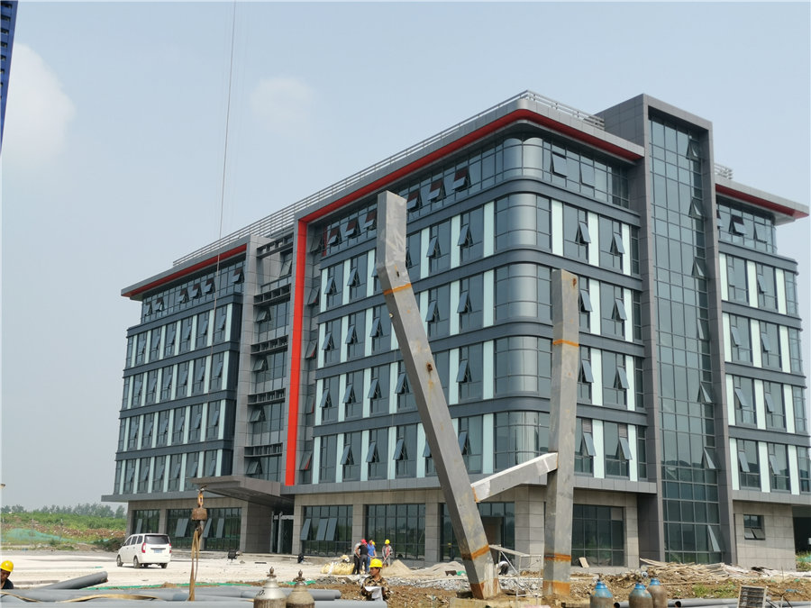 • 南京空港大通关北区幕墙工程综合了玻璃幕墙、干挂石材幕墙、铝板幕墙三种幕墙系统,总面积约13000平方米。